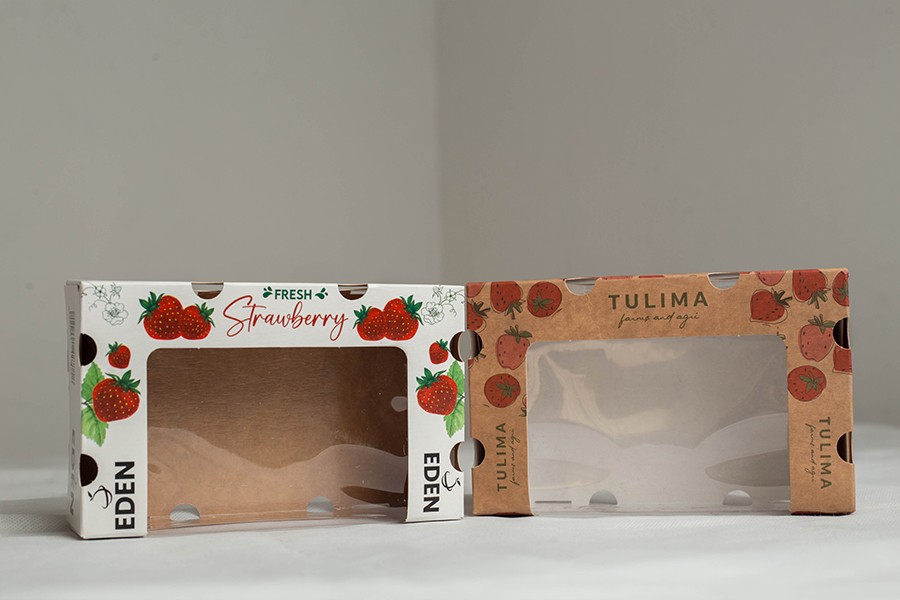 عبوات متينة ومستدامة: تقدم عبوات "EcoFresh Clamshells" حلاً مبتكرًا للمنتجات الطازجة مثل التوت والعنب والطماطم. فهي مصنوعة من ورق مقوى قوي وصديق للبيئة، وتوفر الحماية والرؤية لمنتجاتك، مع خيارات العلامة التجارية المخصصة لتعزيز جاذبية الرف.
